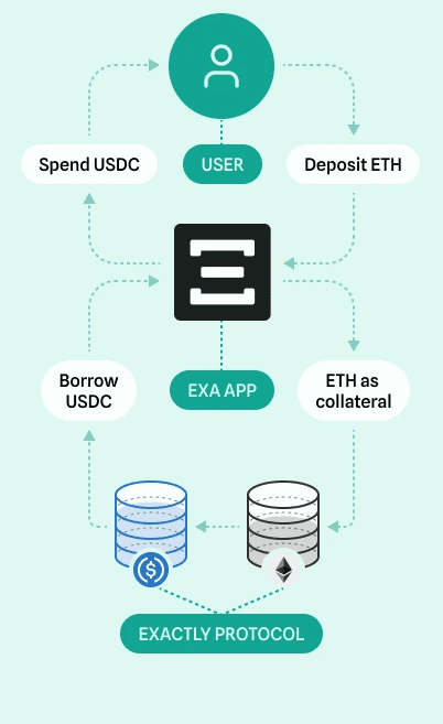 All borrowing and spending features are enabled by non-custodial smart contracts. Terms apply. Cards are issued by licensed third parties; Exa Labs does not issue or manage payment instruments. Yield is variable and not guaranteed. Subject to protocol conditions and smart contract interaction. Access may be restricted in certain jurisdictions.